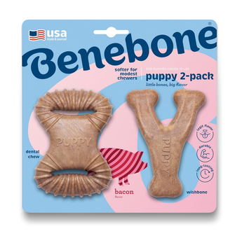 Benebone cachorro 2-Pack pequeño tamaño Dental masticar/Wishbone perro masticar juguetes madera de nailon hecho en EE. UU. Real Bacon sabor tarjeta embalaje
